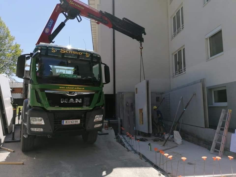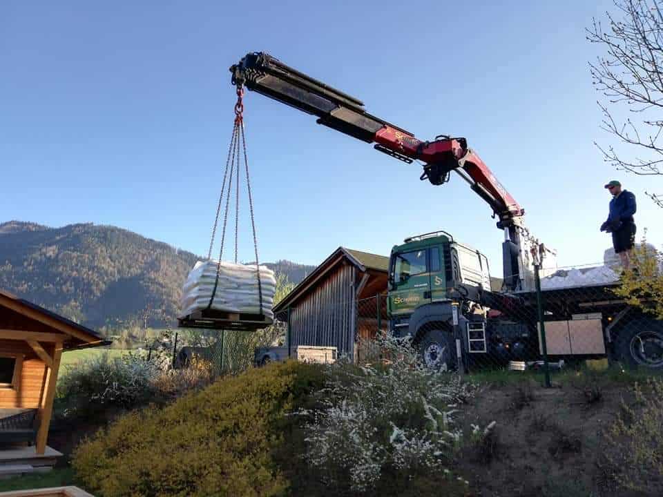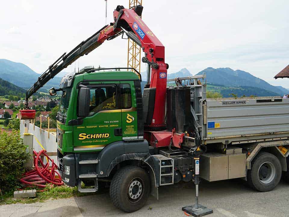 Ob mit Arbeitskorb oder Lasthaken, gerne unterstützen wir Ihr Bauvorhaben mit unseren modernen Kran-LKW.