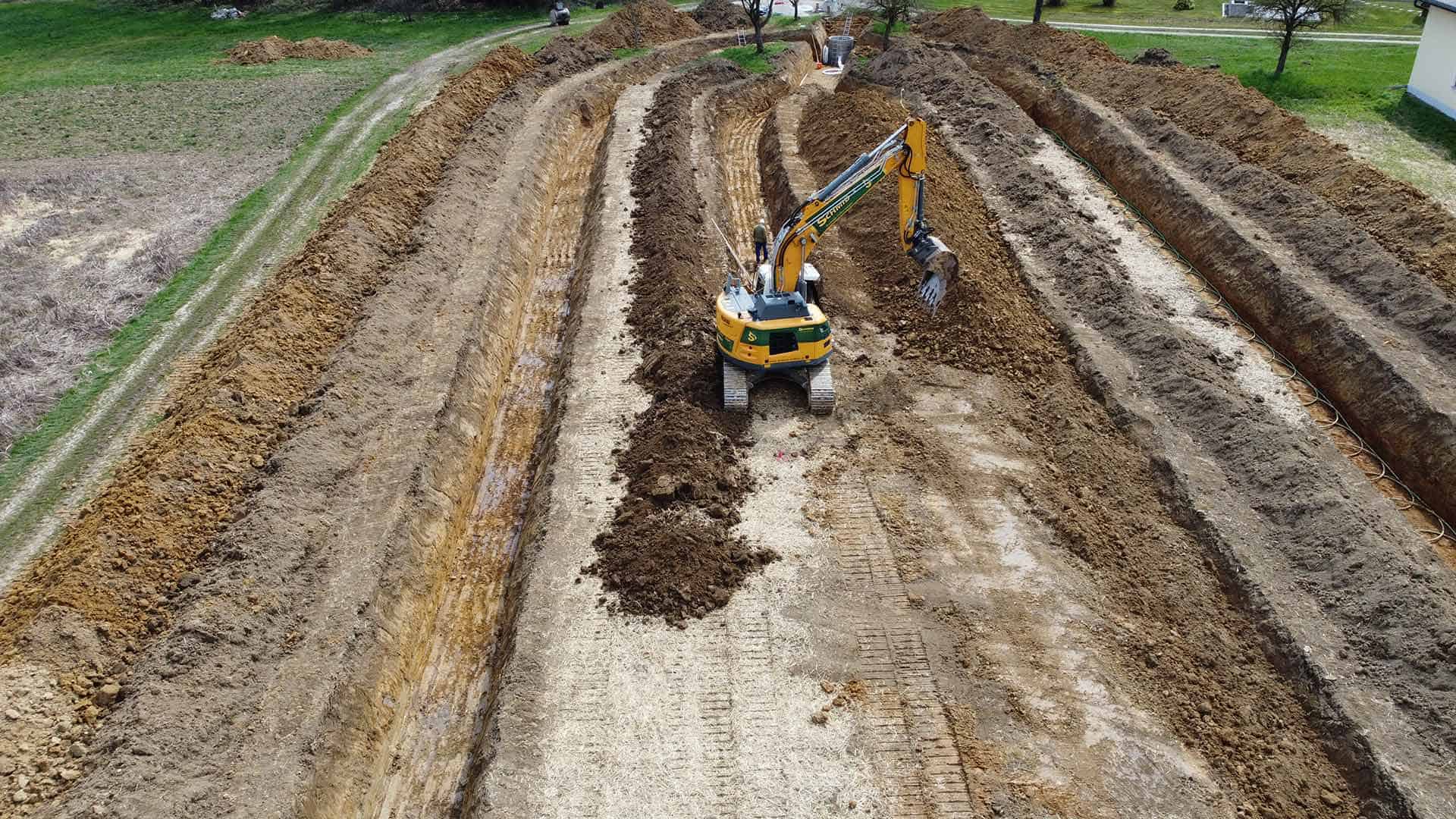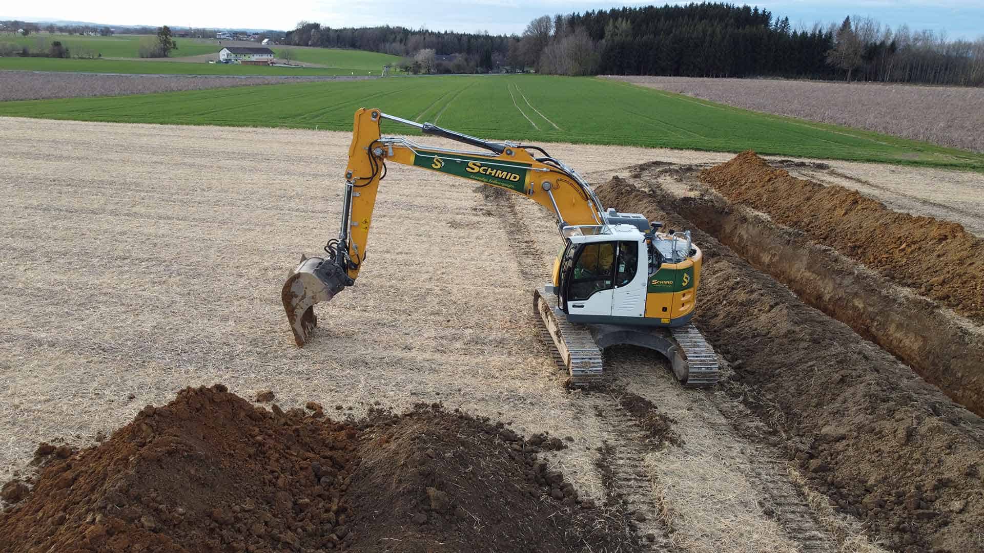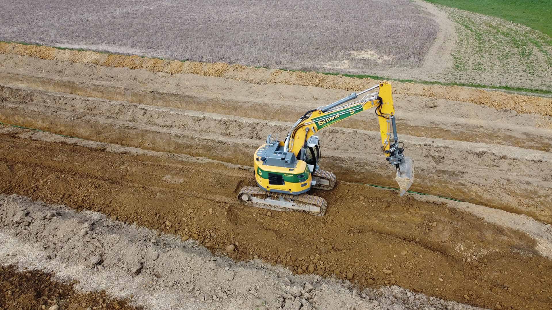 Aushub für die Verlegung eines Ringgrabenkollektors