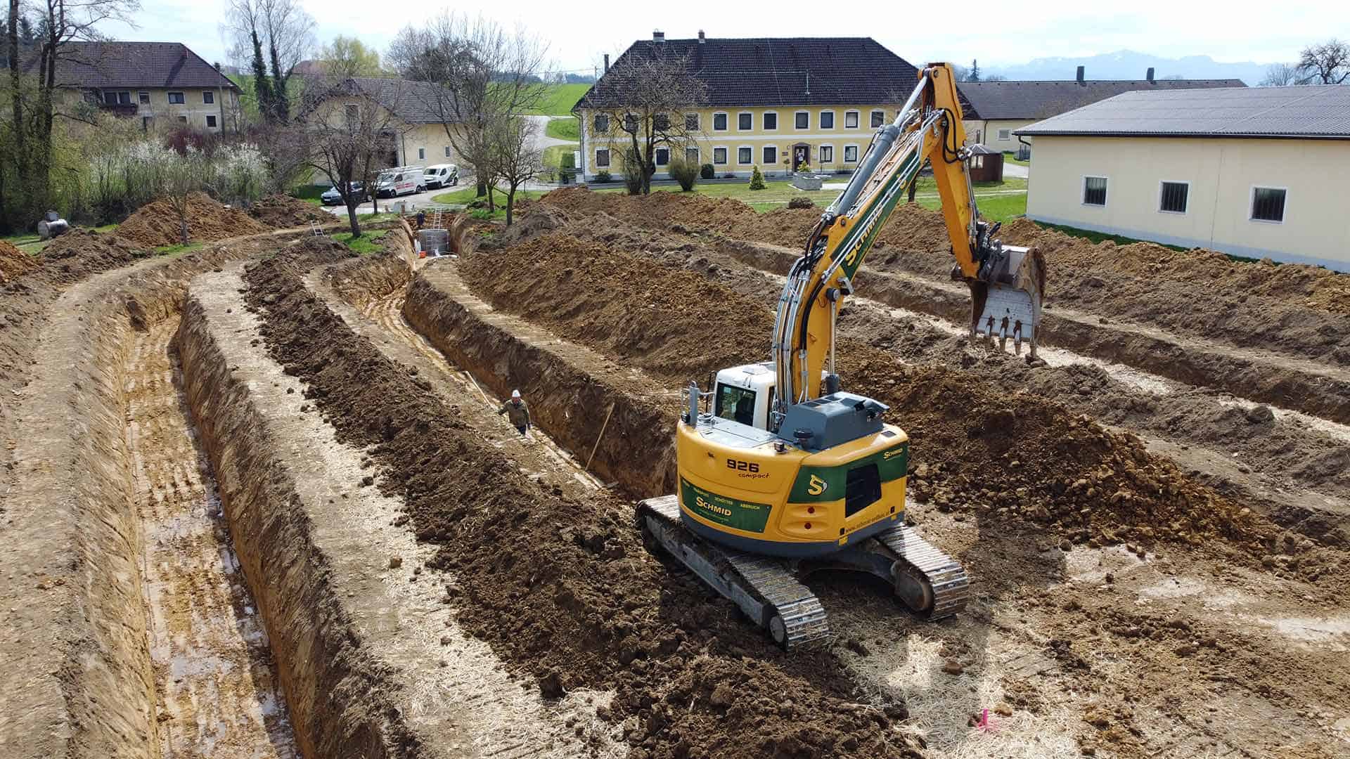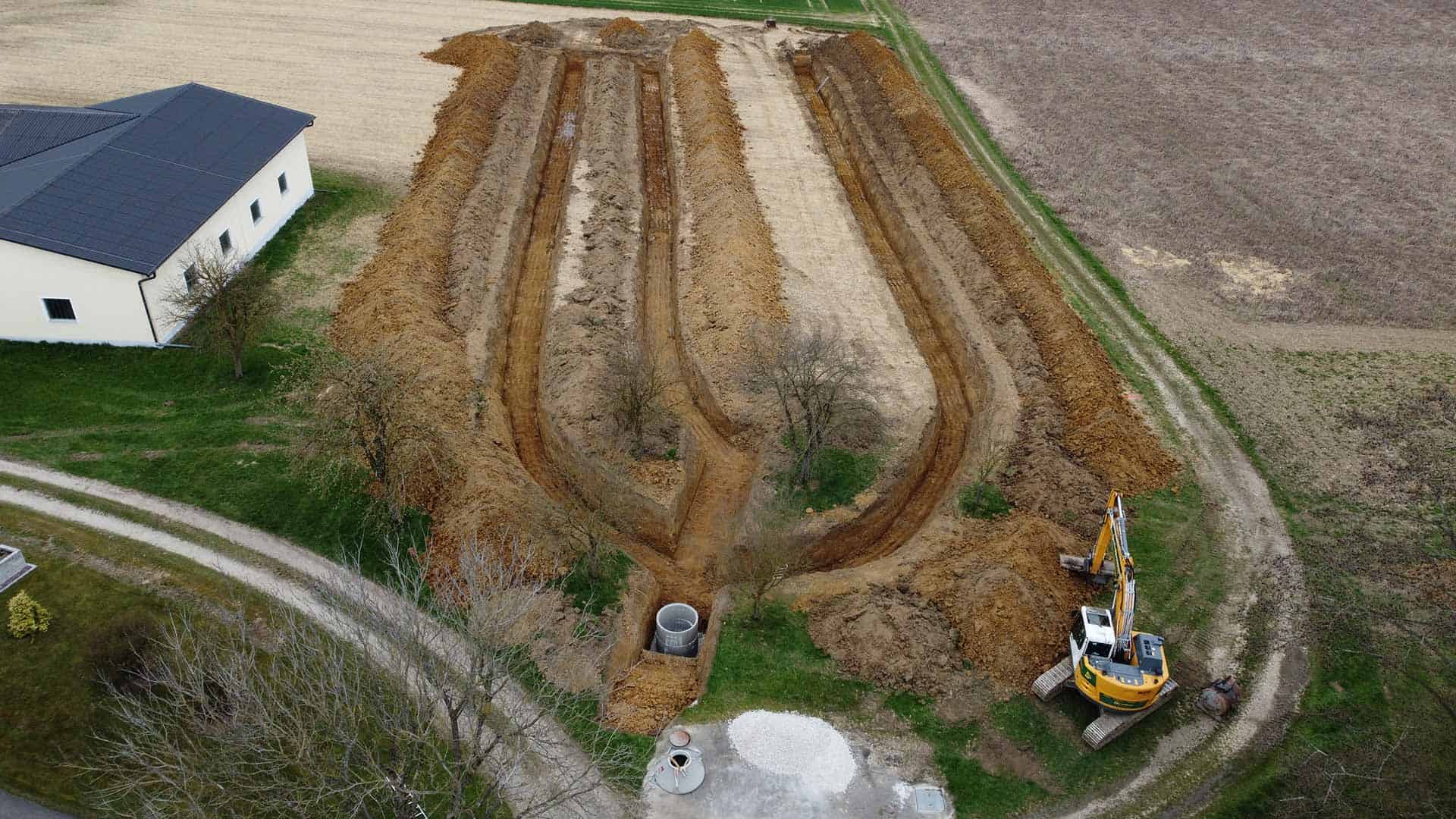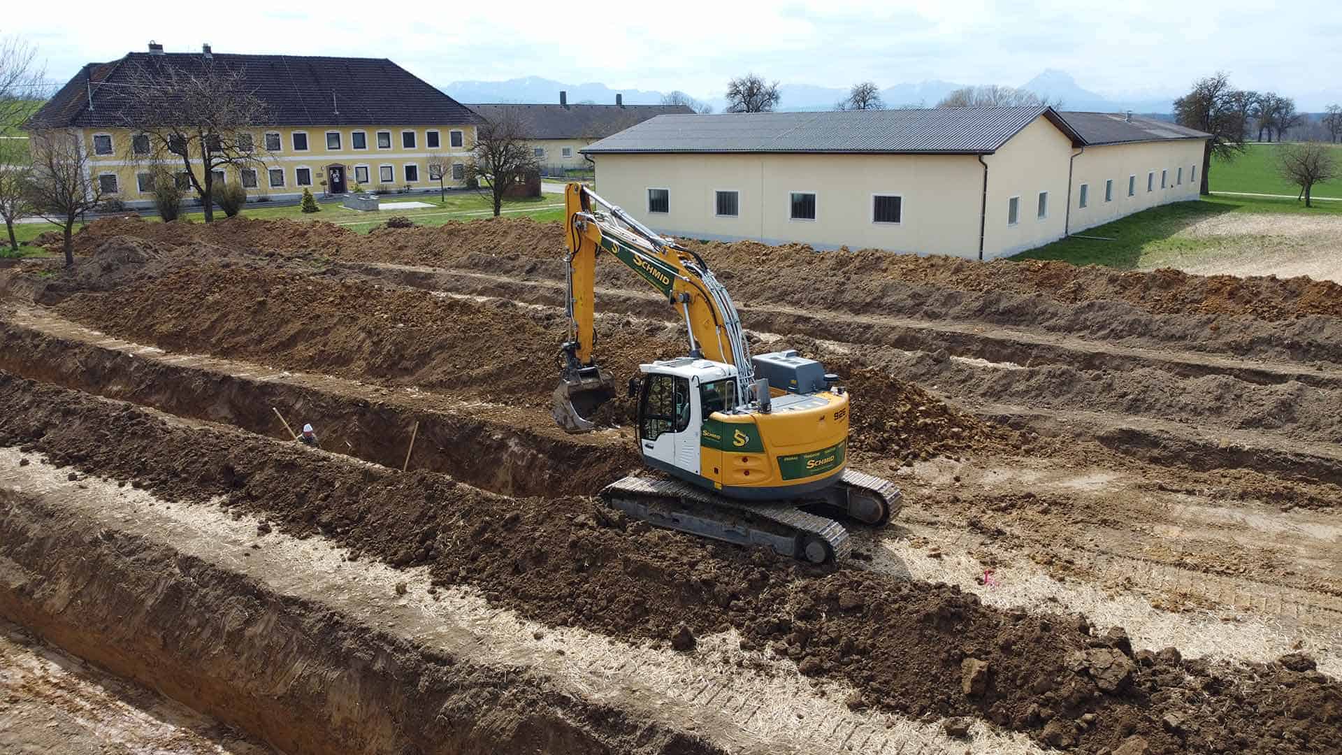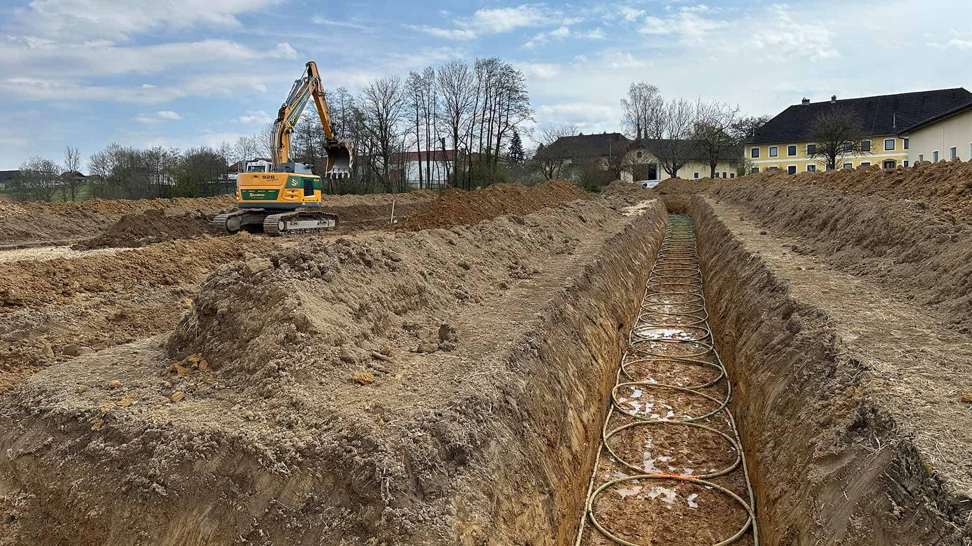 In Ried im Traunkreis führten wir den Aushub Erdwärmeheizung Ried für die Verlegung eines Ringgrabenkollektors durch und ermöglichten den Umstieg auf Erdwärme.