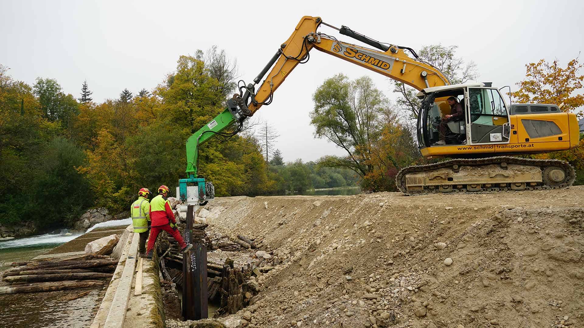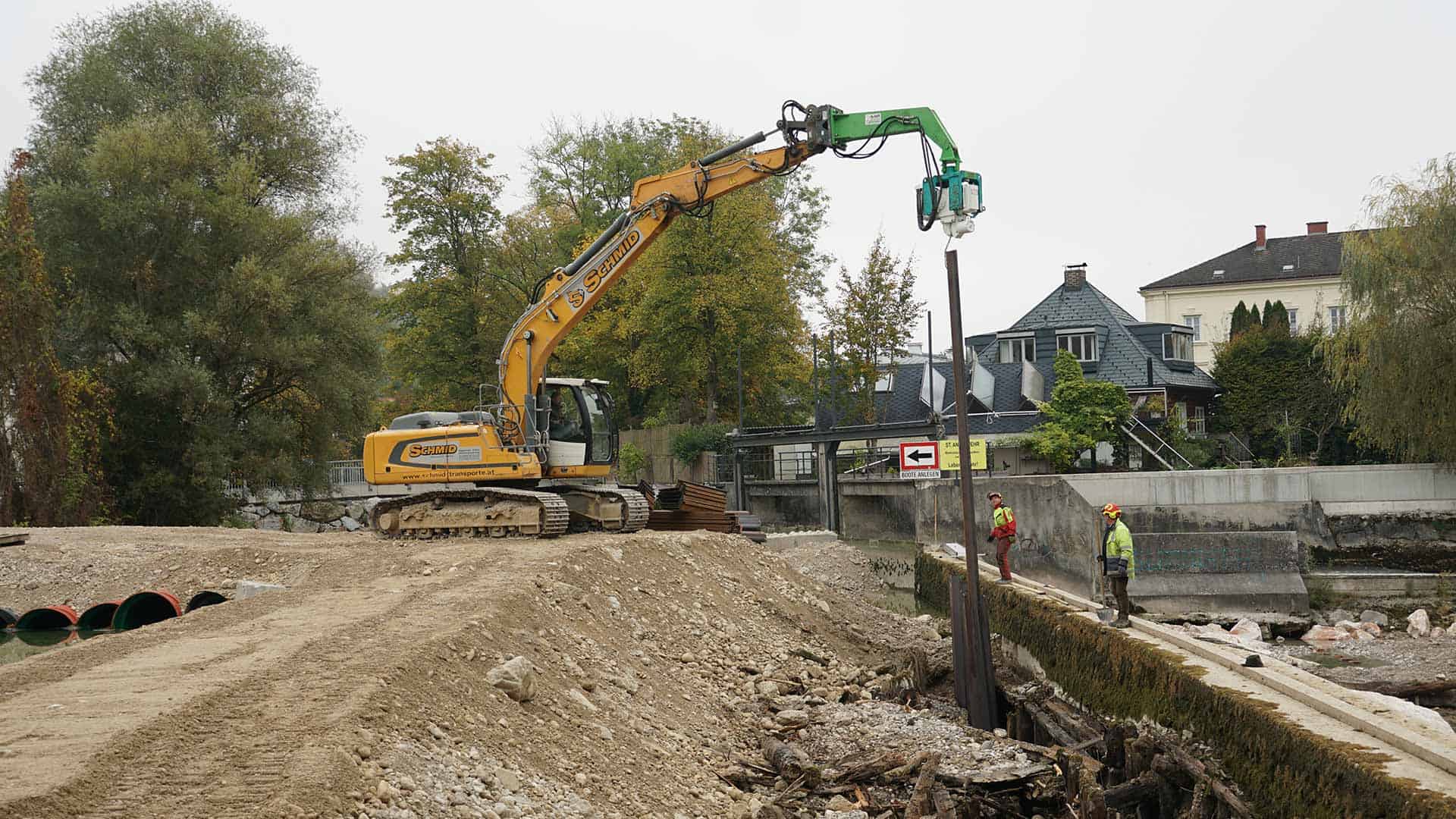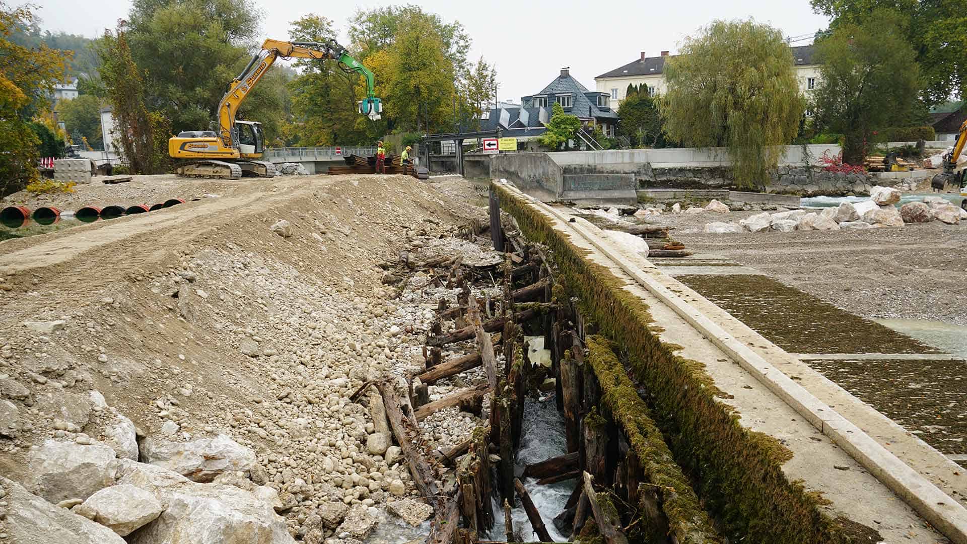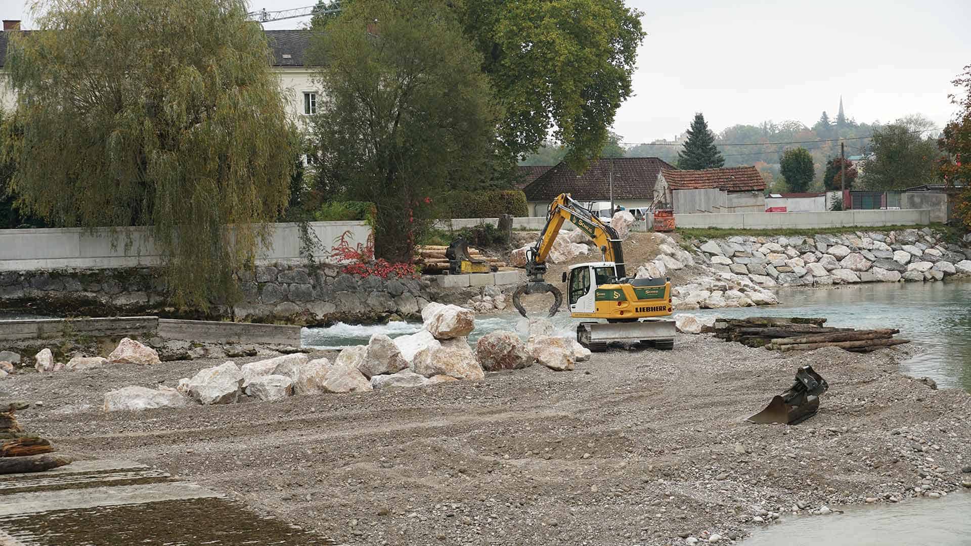 In Steyr sanierten wir die Wehranlage am Steyrfluss und setzen die über 100 Jahre alte Annawehr mit Spundwänden und Natursteinen wieder instand.