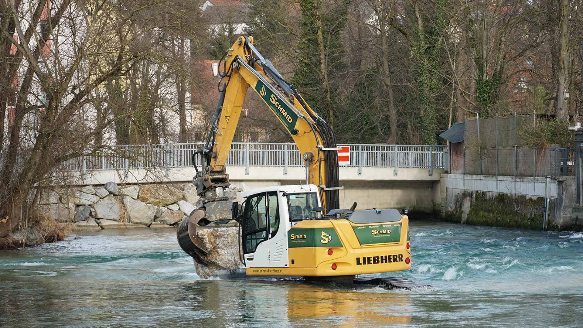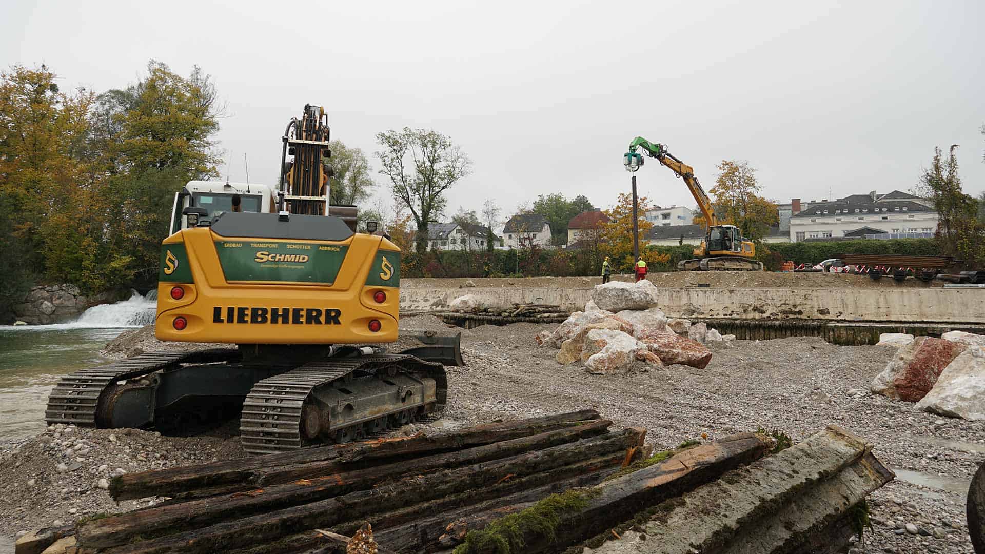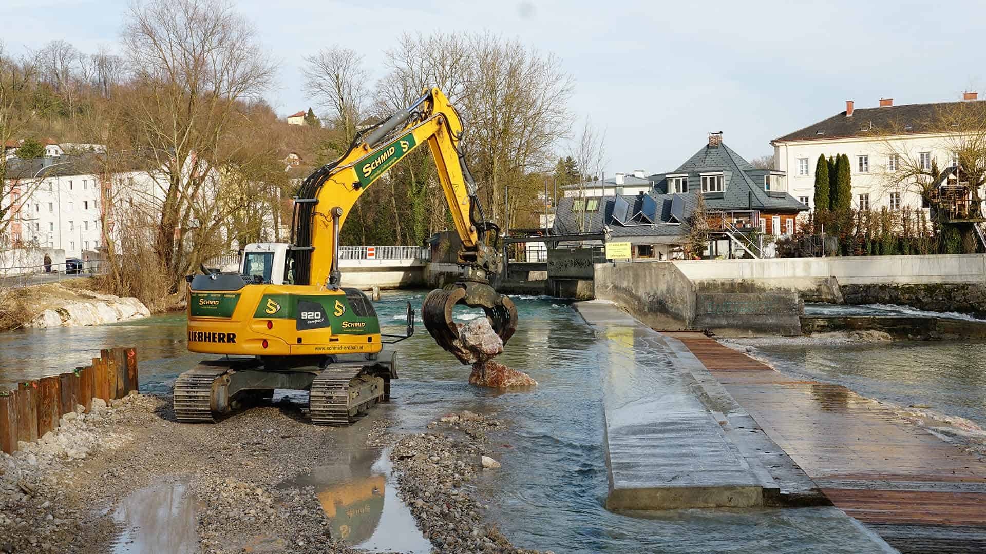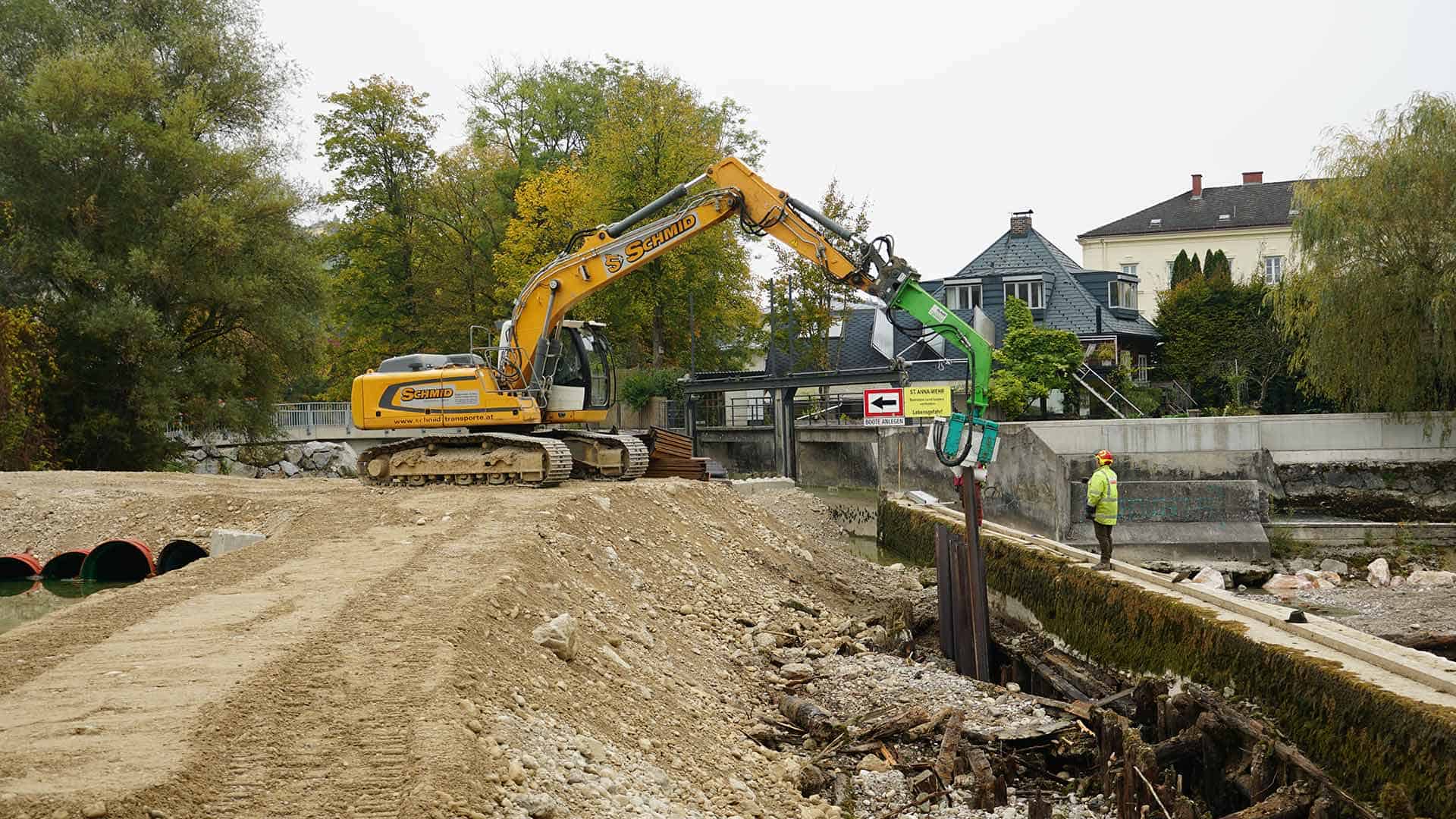 In Steyr sanierten wir die Wehranlage am Steyrfluss und setzen die über 100 Jahre alte Annawehr mit Spundwänden und Natursteinen wieder instand.