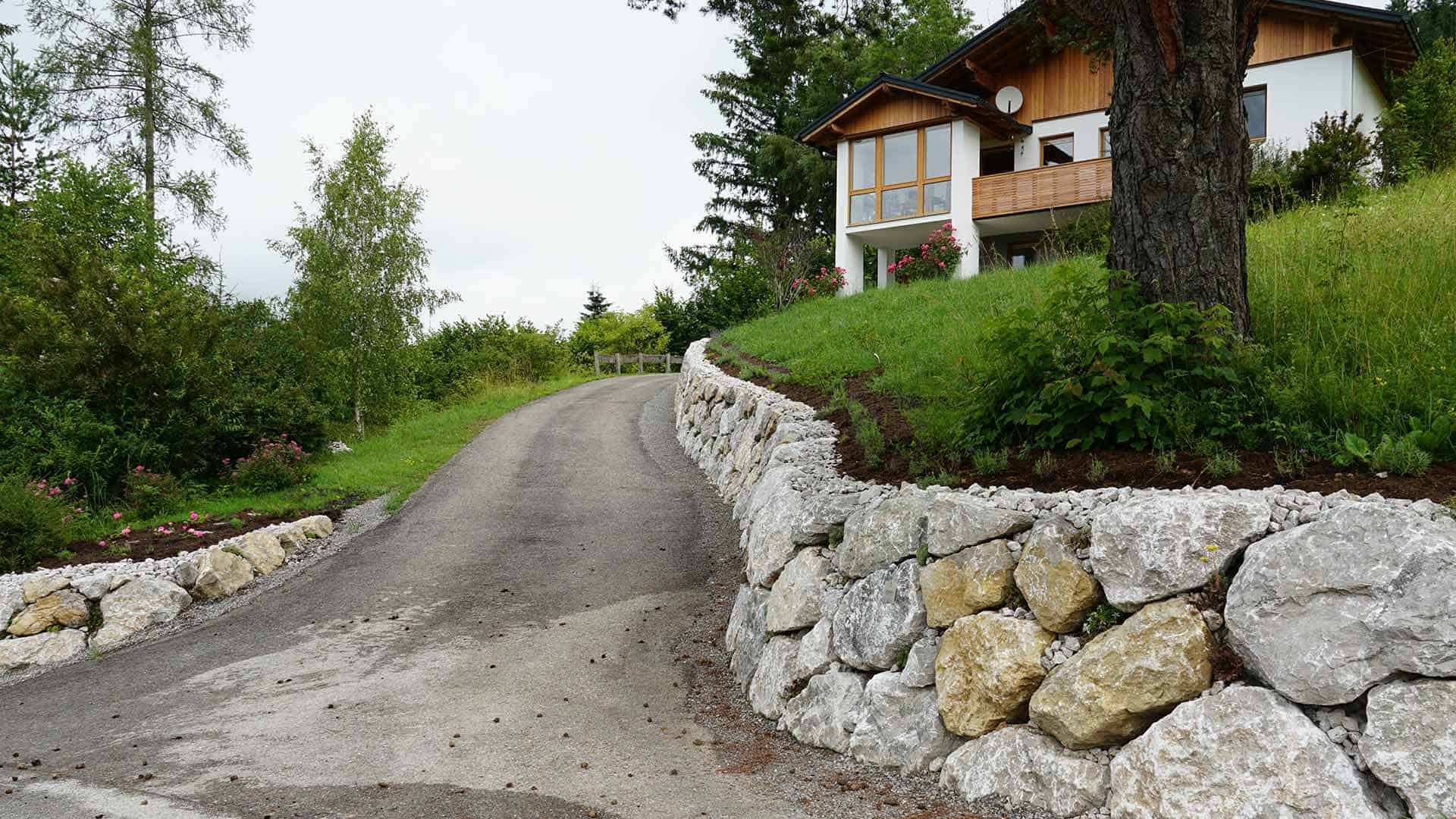 Optimale Absicherung der Zufahrt gegen Erosion und Hangrutschungen.