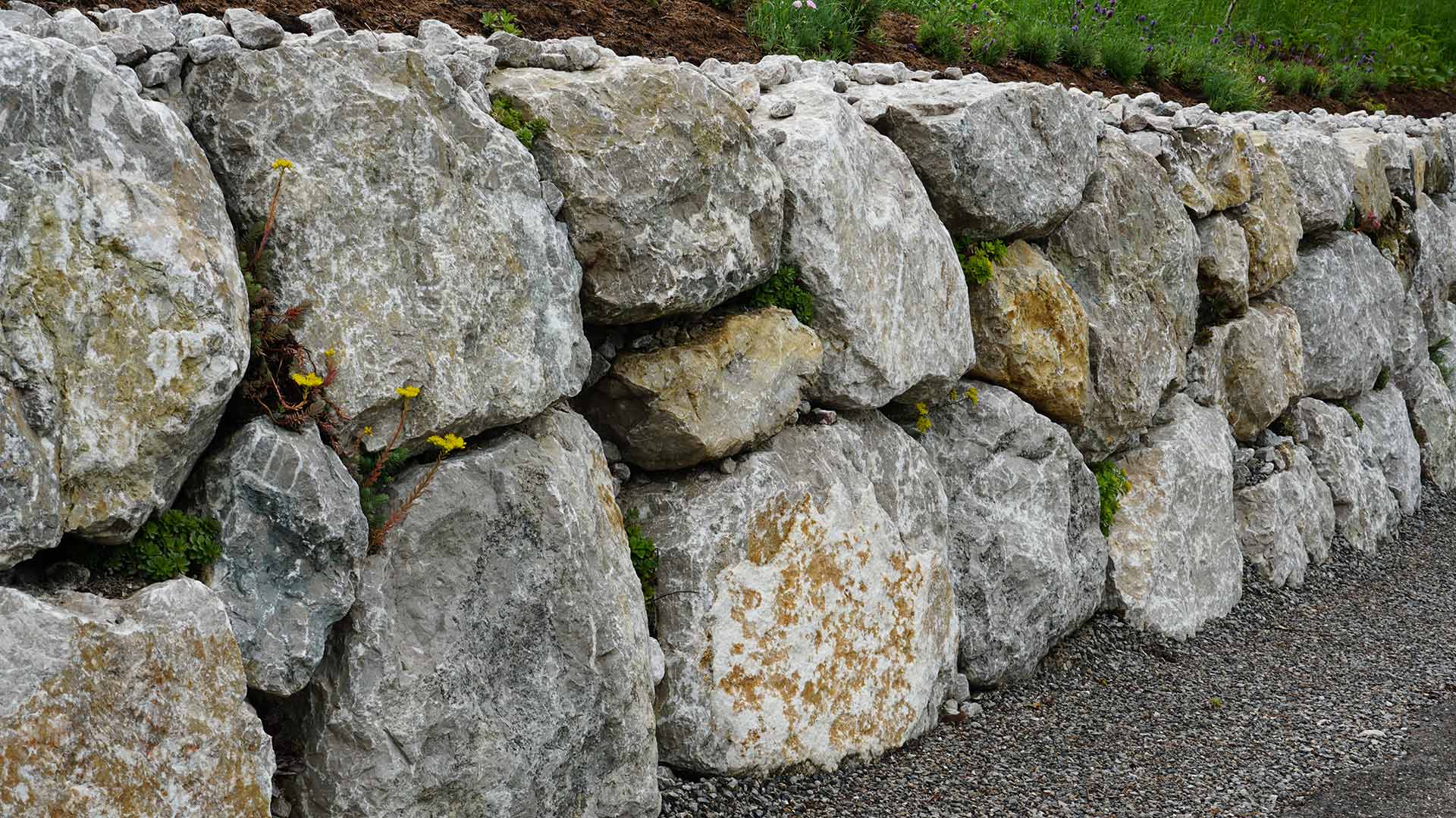 Stabile Böschung durch fachgerechte Steinschlichtung aus Kalkstein