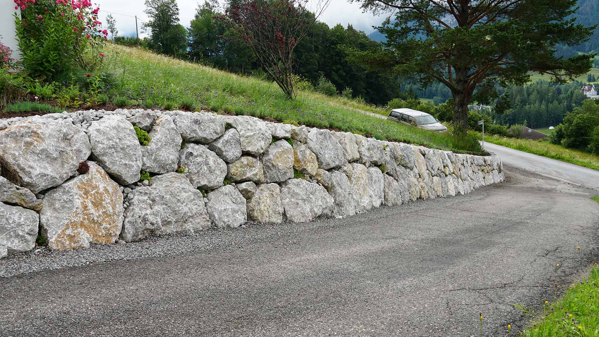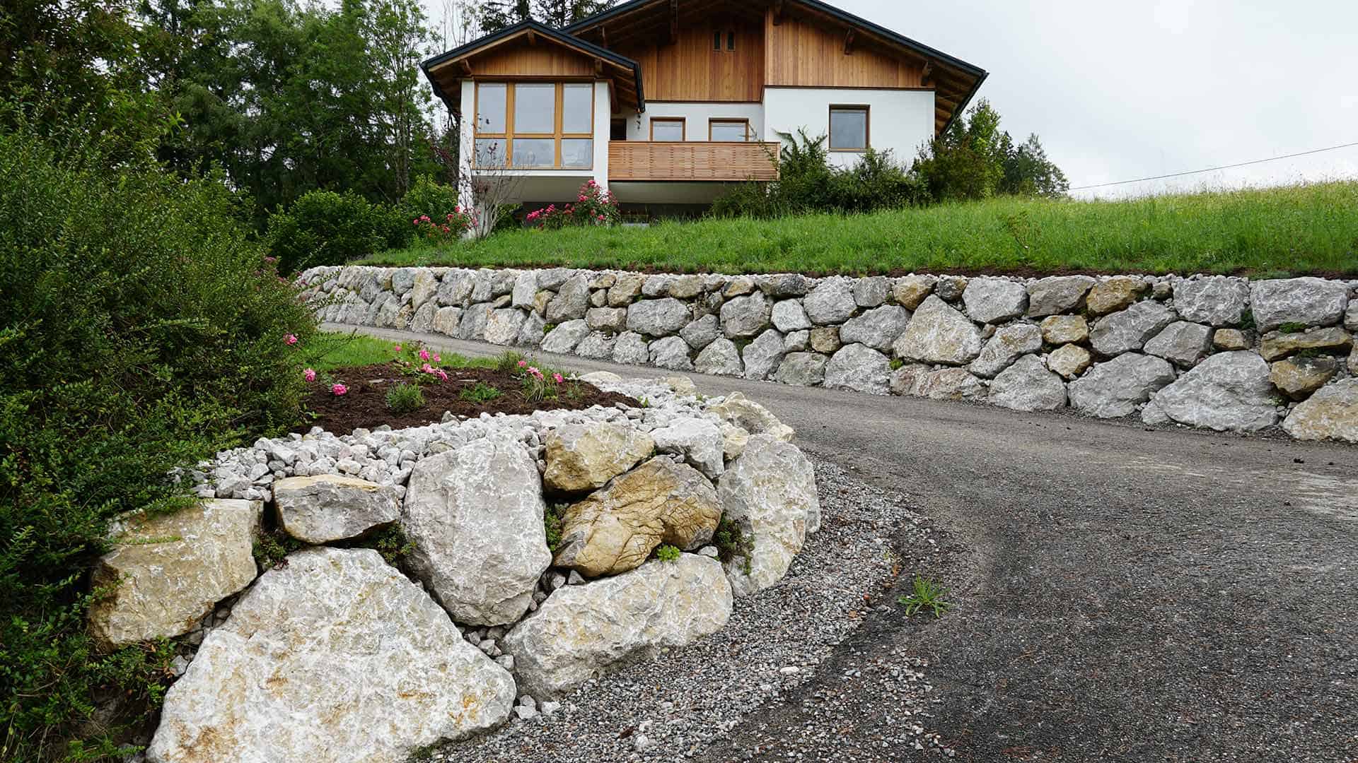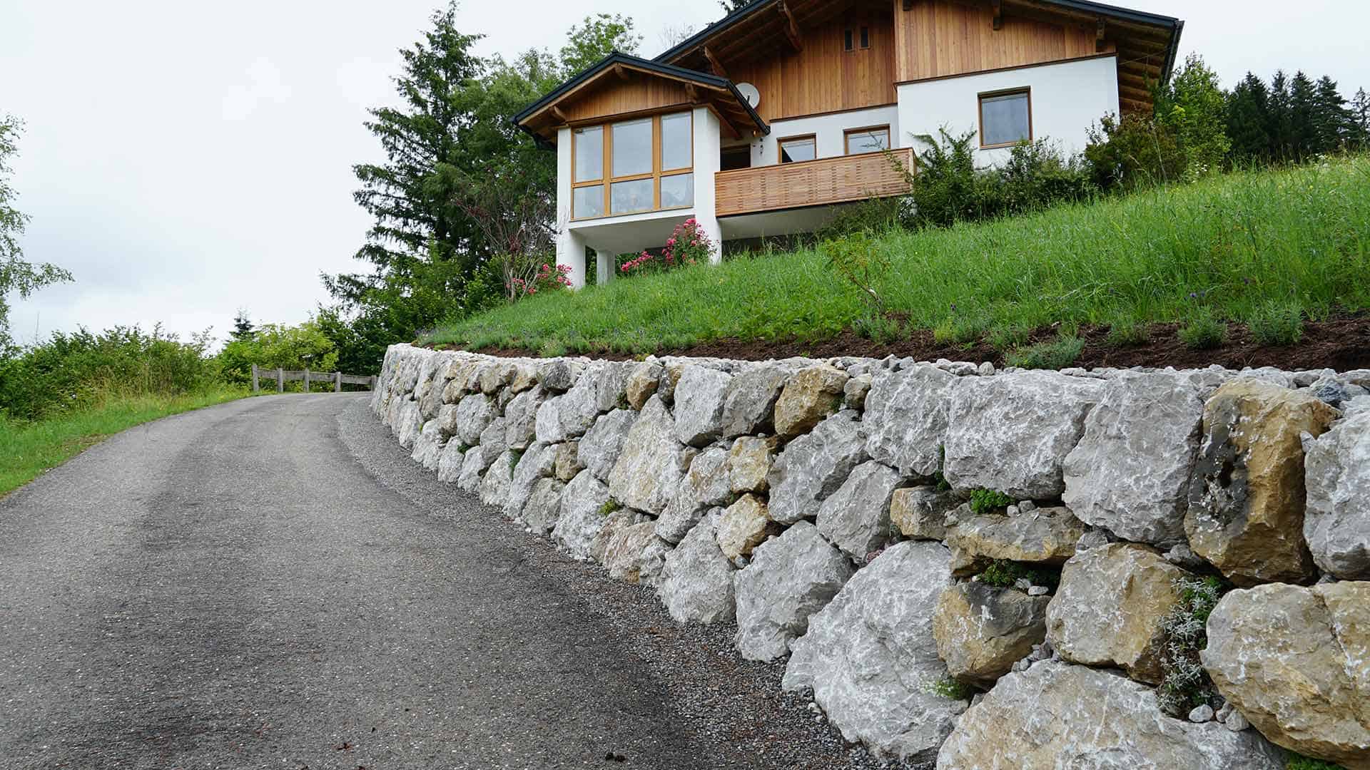 Steinschlichtung Kalkstein Roßleithen: Hangsicherung bei Zufahrt